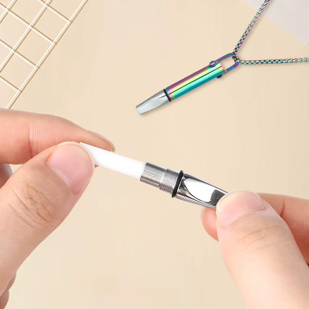 The Set-Free Necklace is a stylish, whistle-shaped necklace designed to help reduce smoking cravings. It mimics the hand-to-mouth motion of smoking while allowing you to inhale clean, filtered air infused with a pleasant fruity flavor — giving you both the physical and sensory satisfaction of smoking, without nicotine or harmful chemicals.